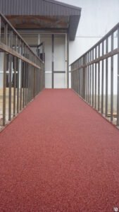 Un sistem de covoare de cauciuc bine executat poate proteja eficient suprafetele din beton si poate reduce semnificativ riscul de accidentare in zonele cu trafic intens. Datorita structurii elastice, aceste sisteme sunt potrivite pentru aplicatii unde este necesara amortizarea socurilor si o aderenta buna.