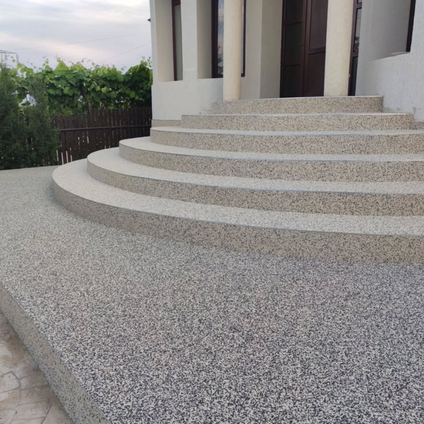 realizeaza si lucrari profesionale de aplicare covor de piatra pentru terase, balcoane si scari
